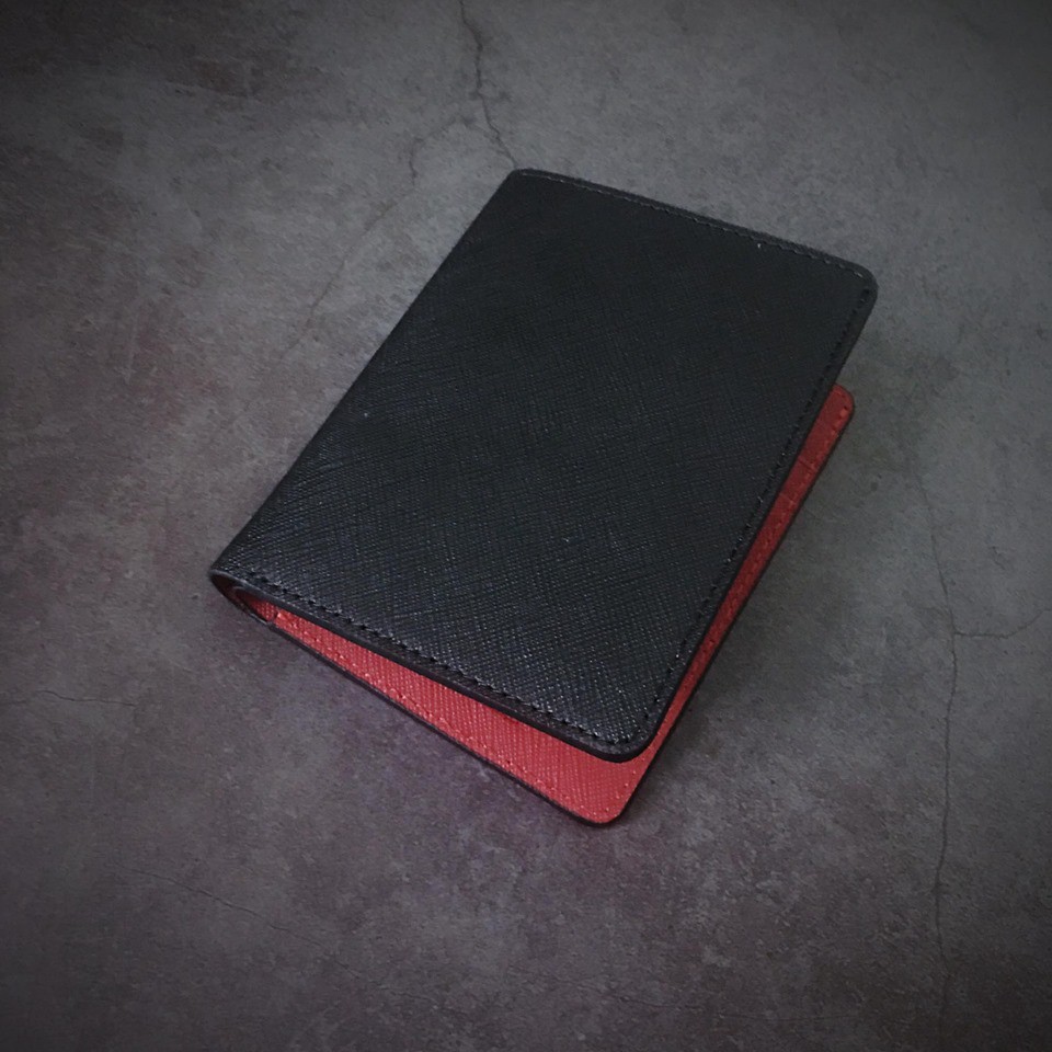 VÍ ĐỨNG MINI ĐEN ĐỎ DA BÒ SAFFIANO THẬT 100%-Giảm 20K khi Follow Shop